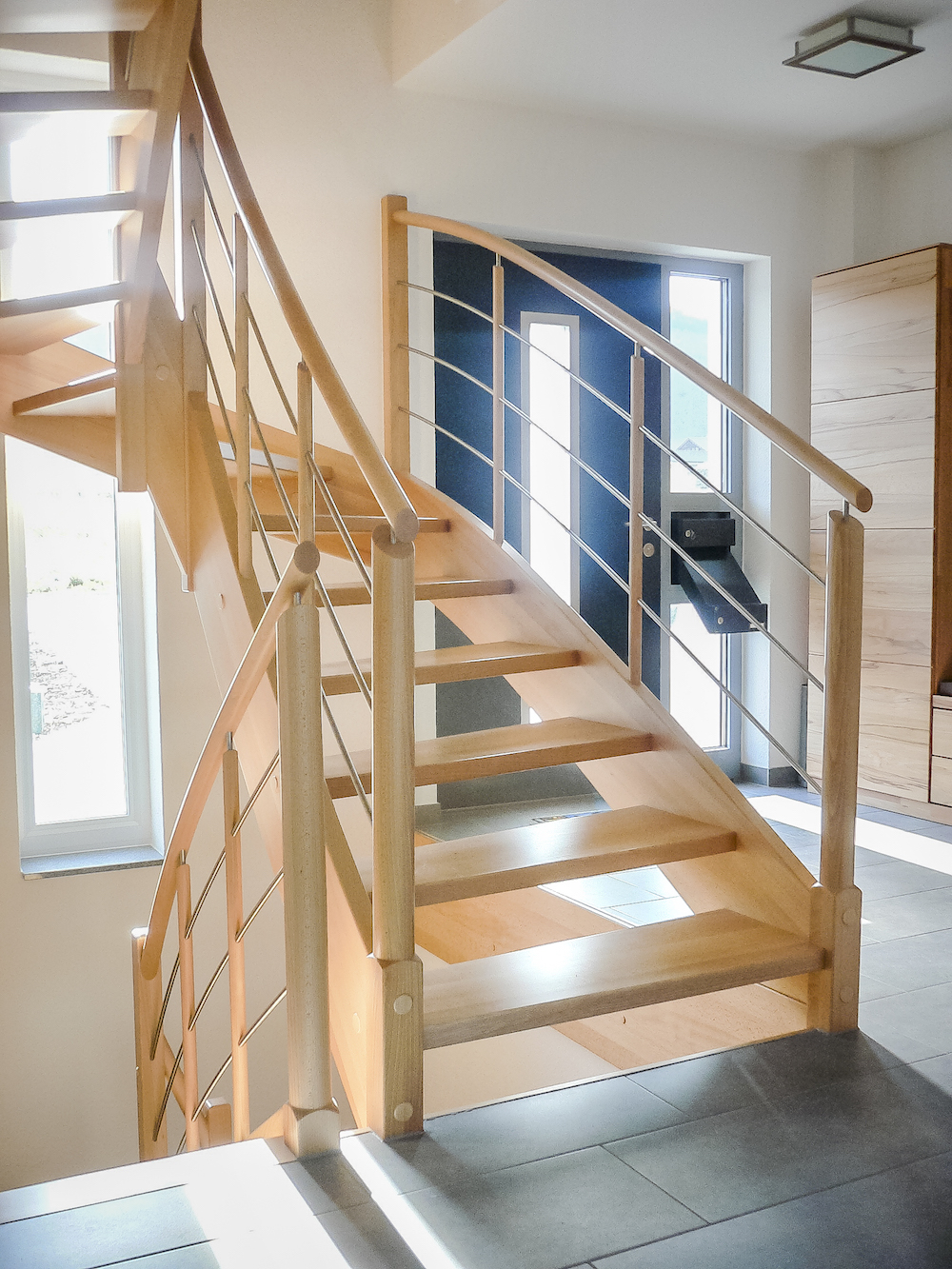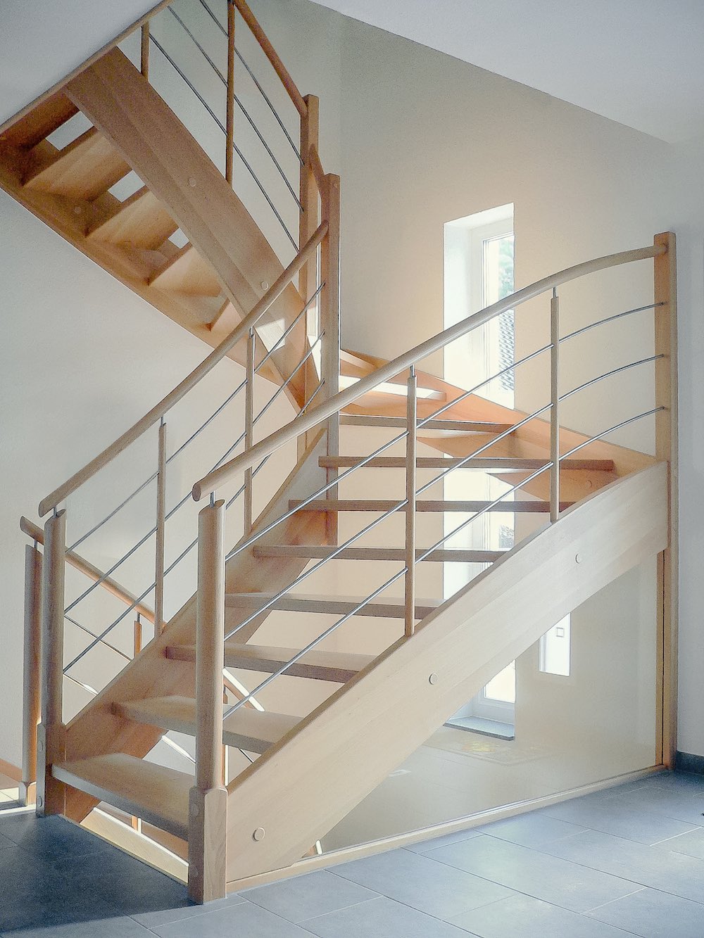 Moderne Holztreppe komplett in Buche massiv blockverleimt